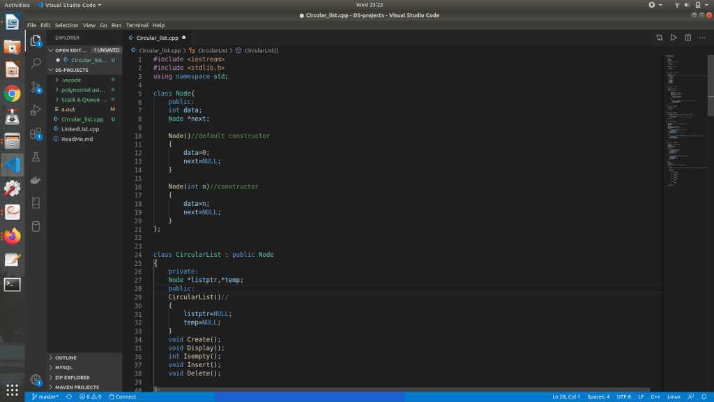 Now why Circular Link list , as you might have noticed when you pop a value the memory of the element goes waste , until an unless you free the memory location , So to counter this we use circular List .