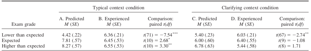 Levine et al. (2012). Accuracy and artifact: Reexamining the intensity bias in effective forecasting. This paper tells us we overestimate our emotions and getting bad grades won’t make us feel as bad as we think they will – we adapt to bad events, too