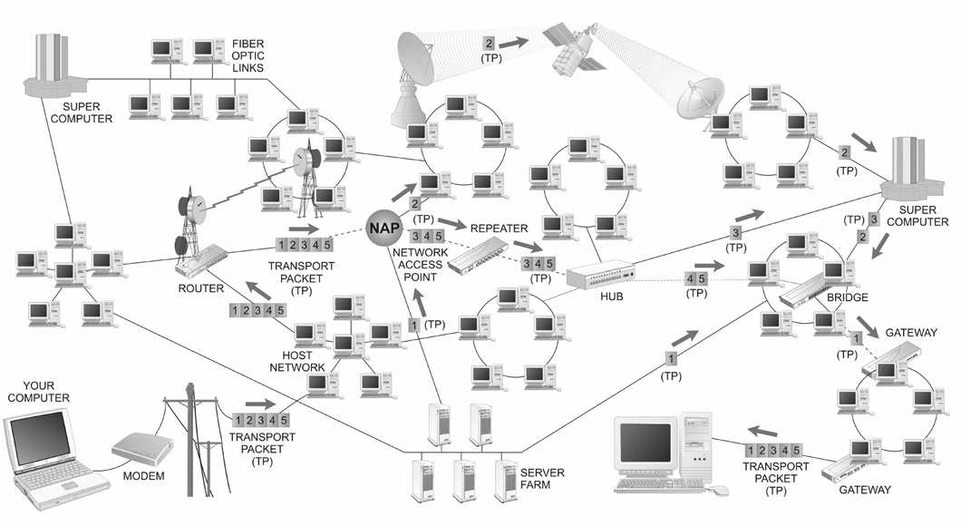 3. Request sent through wires or satellite which link to wires using your ISP(Internet Service Provider),