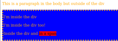 <p>Inside the div and <span>in a span</span></p>
