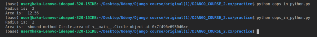 Now to note is if instead of c.area() i just call c.area, it will return the location of the function, not call it.