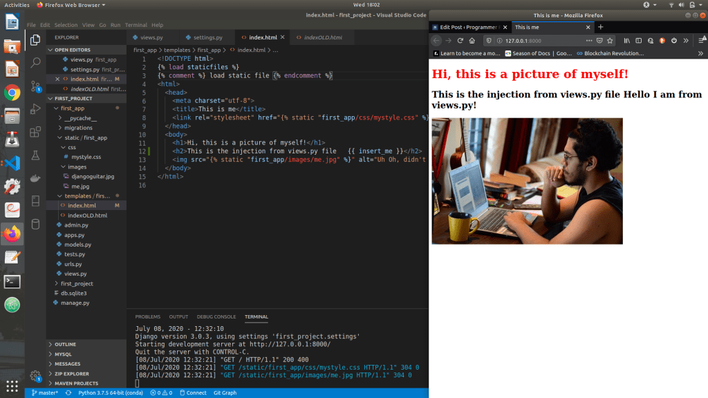There are a few basics steps to achieving the goal of serving dynamic content to a user based off the connection of the models, views , and templates.