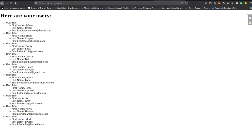 We often sometimes need to populate or fill in the database to see how our app will act with some data, it can be done by Faker library, we can make a python script to do this,