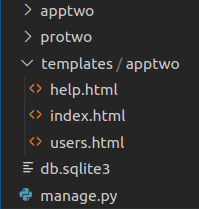 2.Now by default we don’t have a urls.py file in the app, but we can create one urls.py file in app