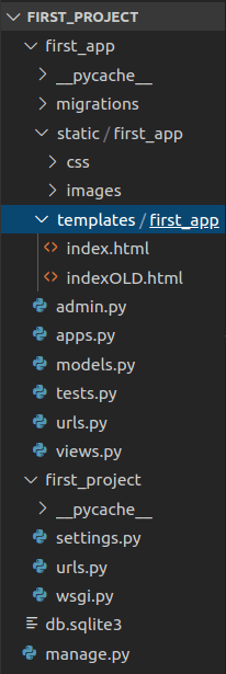 - Migrations folder: This directory stores database specific information as it relates to the models