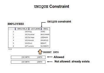 4.Unique Constraint: The UNIQUE constraint ensures that all values in a column are different. Both the UNIQUE and PRIMARY KEY constraints provide a guarantee for uniqueness for a column or set of columns.