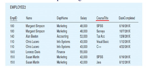 - There is no repeating groups