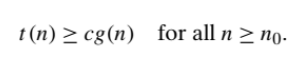 A function t(n) is said to be in Ω(g(n)), denoted t(n) ∈Ω(g(n)), if t(n) is bounded below by some positive constant multiple of g(n) for all large n, i.e., if there exist some positive constant c and some nonnegative integer n0 such that