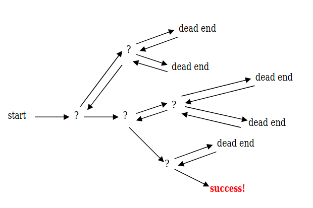 - If we get stuck at a point, after which there is no solution. Then we backtrack to one step before and take an another approach.