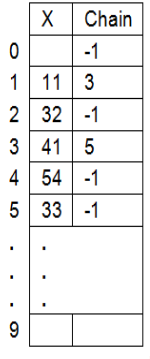 - It its position is occupied by another identifier Y, the identifier X is put in the next vacant position and a chain is formed to the new position i.e. from Y to X.